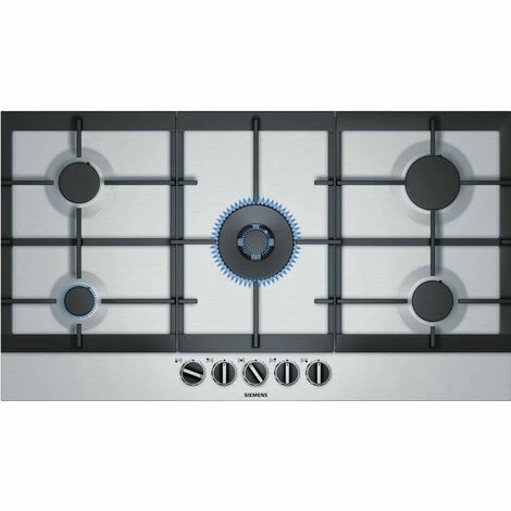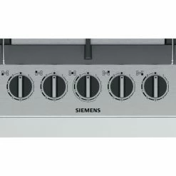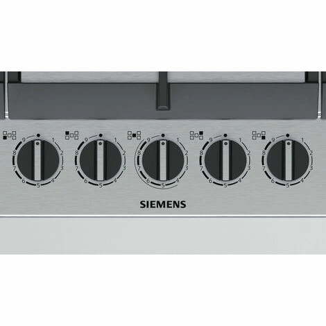 Siemes EC9A5RB90 iQ500 Gas Edelstahl Tisch mit stepFlame Technologie fĂĽr präzise Flammenkontrolle in 9 Leistungsstufen. StepFlame-Technologie: Präzise Wärmesteuerung in 9 Leistungsstufen. Doppelkronen-Wok mit einer Leistung von 5 kW. Ideal zum Kochen einer Vielzahl von Gerichten auch in groĂźen Mengen. Hohe Materialqualität und Verarbeitung – Gusseisenhalterungen. Komfortable Bedienung dank der hohen Qualität der Schwertknöpfe. Siemens Tisch mit einzigartigem Design aus Edelstahl. Leistung: 5 Brenner. Vorne links: Economy-Brenner 1 kW. Hinten links: Normalbrenner 1,75 kW. In der Mitte: Wok 5 kW. Hinten rechts: Hochleistungsbrenner 3 kW. Vorne rechts : Normalbrenner 1,75 kW. Komfort / Sicherheit: StepFlame-Technologie: 9 genau einstellbare Leistungsstufen. Einhand-ZĂĽndung. Gassicherheit durch Thermoelement. Einfache Reinigung. GusseisenstĂĽtzen. – Produktgruppe: Kochfeld.