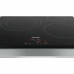 Siemens iQ100 Induktionskochfeld EU631BJB1E vorne abgeschrägt. Induktionskochfeld mit neuen innovativen Funktionen für große Flexibilität in jeder Situation. Induktion, eine innovative Technologie, die Ihre Garzeiten verkürzt, die Reinigung erleichtert und Ihnen mehr Sicherheit bietet. Dank der PowerBoost-Funktion ist die Aufwärmzeit um bis zu 50% kürzer. Automatische Behältererkennung: Erkennt die Position, Größe und Form des Behälters. – Auch wenn der Behälter neu positioniert wird. Design: – Digitalanzeige. – TouchControl-Steuerung (+/-). Leistung: – 3 Induktionskochplatten – Kochzonen: 1 x Ø 280 mm, 2,6 kW (PowerBoost 3,7 kW), 1 x Ø 145 mm, 1,4 kW (PowerBoost 2,2 kW), 1 x Ø 210 mm, 2,2 kW (PowerBoost 3,7 kW). Komfort / Sicherheit: – QuickStart-Funktion: Automatische Erkennung von Containern auf dem Kochzone – Neustartfunktion: Bei plötzlichem Anhalten des Kochfelds 4 Sekunden Speicherung der Anfangstemperatur – 17 Einstellpositionen – PowerBoost auf jeder Kochplatte – Timer an jedem Kamin. – 2-stufige Restwärmeanzeige – Kindersichere Verriegelung . – Produktgruppe: Kochfeld.