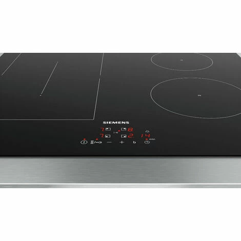 Mit dem Siemens ED611BSB5E combiInduction iQ500 Induktionskochfeld stehen Ihnen neue Kochmöglichkeiten zur Verfügung.Induktion, eine innovative Technologie, die Ihre Kochzeiten verkürzt, die Reinigung erleichtert und Ihnen mehr Sicherheit bietet.das combiZone-Kochfeld,kochen Sie mit allen Topf- und Pfannengrößen. Dank powerBoost-Funktion ist die Vorheizzeit bis zu 50 % schneller.Dank touchControl lassen sich die Kochzonen mit einem einfachen Fingerdruck aktivieren und steuern.Induktion: powerInduction von Siemens: schnell, sicher und leicht zu reinigen .Sofort warm. Sofort kalt. Entdecken Sie die Vorteile der powerInduction-Technologie von Siemens. Die Wärme wird über Induktionsspulen direkt auf die Pfannen und deren Inhalt übertragen, ohne dass sich das Kochfeld aufheizt. Das bedeutet für Sie: kurze Kochzeiten, erhöhte Sicherheit und einfache Reinigung des Kochfeldes. Timer mit Abschaltfunktion der Kochzone: Der Timer mit Abschaltfunktion schaltet die ausgewählte Kochzone am Ende der Zeit vollkommen sicher ab angezeigt.Timer: Timer-Funktion für kontrolliertes Garen.powerBoost-Funktion: powerBoost-Funktion: ultraschnelles Vorheizen.Die powerBoost-Funktion ermöglicht ein bis zu 50 % schnelleres Vorheizen. Er kann die Kochzeit von Schmortopf und anderen großen Gerichten um bis zu 35 % verkürzen.touchControl: Die touchControl-Leiste Diese Kontrollleiste ermöglicht eine sehr präzise Steuerung jeder der vier Kochzonen. Wählen Sie einfach den ausgewählten Bereich aus und drücken Sie leicht auf + oder ? um die gewünschte Temperatur zu erreichen. – Produktgruppe: Induktionskochfeld.