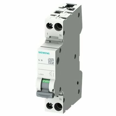 Thermomagnetisch Siemens 6A, Unterbrechungsleistung: 6KA, Thermomagnetische Kurve Typ: C, 1 Modul, Pole Typ: 1P N (bipolare Phase neutral), Schutzgrad IP20.