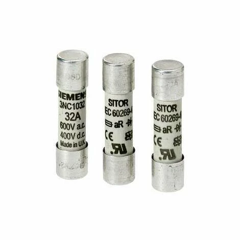 SITOR- Zylindersicherungseinsatz, 10×38 mm, 6 A, gR, Un AC: 690 V, Un DC: 440 V Halbleiterschutzsicherungen SITOR 3NE, 3NC schützen Leistungshalbleiter vor den Auswirkungen eines Kurzschlusses. Das SITOR-Sicherungssystem von Siemens als wichtiger Bestandteil der SENTRON Schutzkomponenten für die Elektroinstallation bietet effektiven Personen-, Geräte- und Anlagenschutz durch sicheres Abschalten im Überlast- und Kurzschlussfall. Der Einsatzbereich umfasst zusätzlich Frequenzumrichter mit Sicherungen im Eingangs- und im DC-Zwischenkreis sowie auch USV-Anlagen und Sanftstarter für Motoren. Die Siemens SITOR-Sicherungen zeichnen sich vor allem aus durch: 1. Superflinke Abschaltcharakteristik im Vergleich zu herkömmlichen NH-Sicherungen. 2. Auch Leistungshalbleiter werden bei Kurzschluss sicher geschützt. 3. Der Siemens Qualitätsstandard sichert eine sehr gute Kennlinientreue. 4. SITOR-Zylindersicherungen sind nach IEC und UL und größtenteils auch CCC zugelassen und damit weltweit einsetzbar. 5. Teilweise geeignet für den Einbau in NH-Sicherungsunterteile, in NH-Sicherungslasttrennschalter und Lasttrennschalter mit