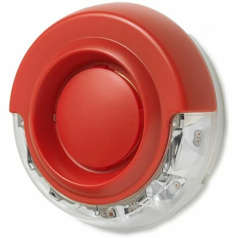 Akustische und optische Sirene Siemens EN54-23 mit Sprachmeldung Farbe Rot mit Blinklicht.