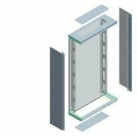 Modularer Metallrahmen IP 30 ohne Tür oder IP 43 mit Tür Abmessungen LXHXP 600X1200X250 Isolationsklasse I. Farbe Ral 7035, hellgrau. Lieferung erfolgt zerlegt in einer flachen Verpackung Obere und untere Kabeleinführungsflansche. Wendetüren, links und rechts angeschlagen Modulare, flach verpackte, bodenstehende Plattenstruktur