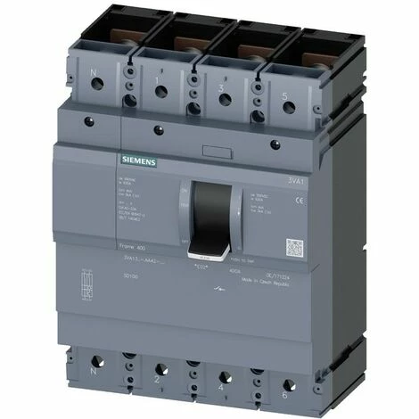 Siemens Sentron 400A 3VA 4-poliger IEC Frame 400 automatischer Unterlasttrennschalter ohne Überlastschutz ohne Kurzschlussschutz Flachschraubanschlüsse.