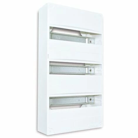Schaltschrank mit 3 Reihen, unbestückt, mit SIEMENS bestückt. Für GTL (Gehäuse Technikkanal) oder Aufputzmontage. Schutzindex: IP30 Stoßfestigkeit: IK05 Abmessungen: Höhe: 475 mm Breite: 250 mm Tiefe: 97 mm