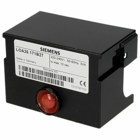Das Relais Siemens LOA26.171B27 wird zur Überwachung, Inbetriebnahme und Pilotierung von Ein- oder Zweiwegebrennern mit maximaler Strömung verwendet. 30 kg/h, intermittierend. Technische Daten:Tension/Netzfrequenz: 220 V – 15% … 240 V + 10% 50…60 Hz ± 6%