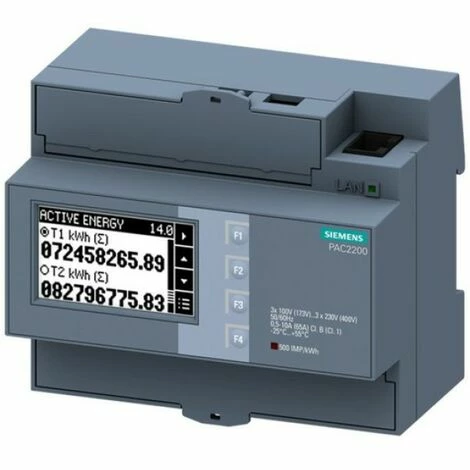Messung aller relevanten Größen eines Wechselstromsystems. Mehrere Energiezähler erfassen Wirk-, Blind- und Scheinenergie zur Ermittlung und Speicherung des letzten Messperiodenmittelwertes für Wirk- und Blindleistung zur einfachen Generierung von Lastprofilen mittels Software (programmierbare Messperiode von 1 bis 60 Min). -) Erfüllt die hohen Anforderungen der IEC61557-12 (Klasse 0,5%). -) Spannung (UL-L / UL-N ) (Mittelwert L1, L2, L3) -) Strom (IL), (IN) (Mittelwert I1, I2, I3) -) Frequenz -) Wirk- (Klasse 1s), Blind- und Scheinleistung -) Wirk- und Blindleistung für Import und Export -) Anzahl der Tarife: 2 -) Leistungsfaktor -) Betriebsstundenzähler / Universalzähler -) Mittel, Min / Max Werte für Leistung. Einsetzbar in TN-, TT- und IT-Netzen. Messung: ein-, zwei- oder dreiphasig. Spannungsmessung: Direktmessung bis zu 480V UL-L , CATIII oder Spannungs Wandler Strommessung : 65A direkt oder Wandler x/5A.