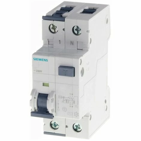 Siemens thermomagnetischer Differenzialschutzschalter, 2 Module, DIN-Montage (universell für jede Schalttafel auf dem Markt), Pole 1P+N, 32 Ampere, Ausschaltvermögen 4,5kA, Spannung 230/240 Vac, Differenzstrom Idn 300mA, Typ AC, Auslösekurve C.